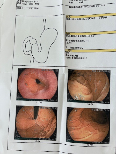 ピロリ菌感染もなく、胃がただれていなくてよかった。