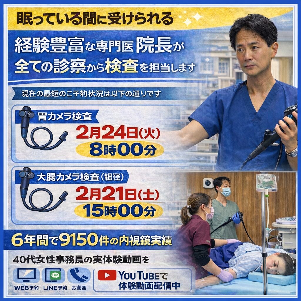 最短内視鏡予約日(胃2/24(火) 8時、大腸2/21(土) 15時)随時更新